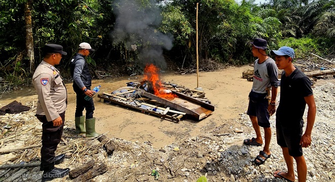 | Minggu, 22 Pebruari 2026 Polisi dan Warga Tertibkan Dugaan PETI di Sungai Jirak Benai, Kuantan Singingi