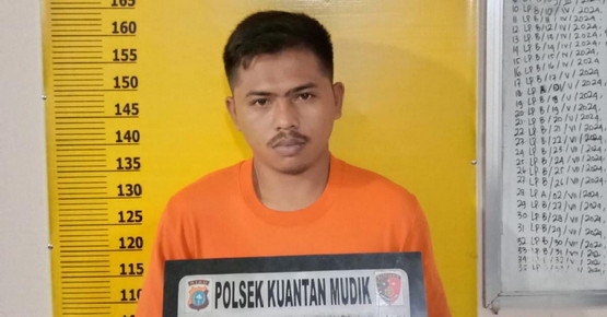 | Kamis, 11 Desember 2025 Tersangka Larikan Gaji Pekerja Kebun Rp141 Juta Ditangkap Polres Kuansing di Palembang