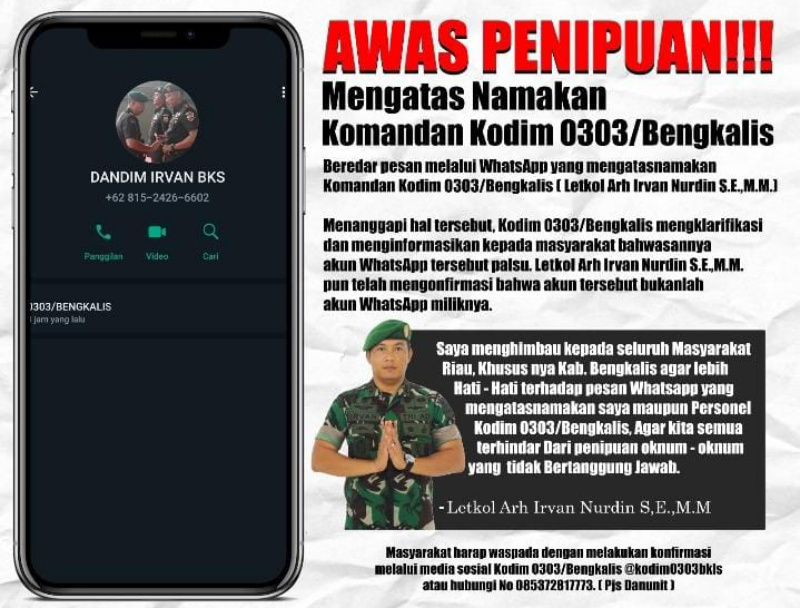 | Selasa, 09 Desember 2025 Aksi Penipu Mengatasnamakan Bupati Inhil di WhatsApp, Herman Tegaskan Bukan Dirinya