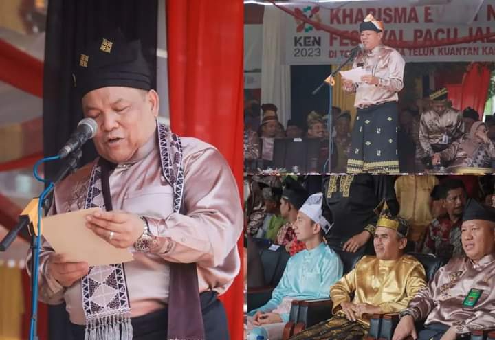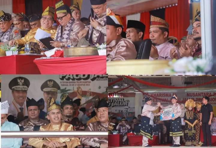 RIAUTERKINI-TELUKKUANTAN- - Anggota DPRD Provinsi Riau Daerah Pemilihan (Dapil) Kuantan Singingi (Kuansing) Marwan Yohanis, Mardianto Manan, Sugeng Pranoto, dan Sardiyono, hadiri pembukaan Festival Pacu Jalur Tradisional 2023 yang diselenggarakan di Lapangan Limuno, Teluk Kuantan Kabupaten Kuantan Singingi, Rabu (23/8/2023).