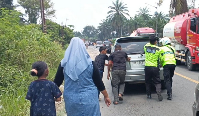 Satlantas Polres Rohil Sigap Bantu Kendaraan Mogok Saat Arus Mudik Lebaran