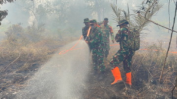Tim Gabungan Berjibaku Padamkan Karhutla di Lahan Gambut Kering di Teluk Lancar Bengkalis