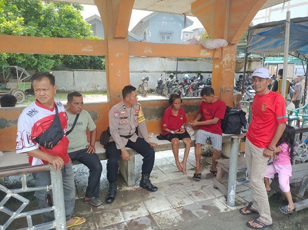 Riauterkini-TANAH PUTIH-Bhabinkamtibmas Kepenghuluan Ujung Tanjung, Polsek Tanah Putih, Aiptu Hetmon Hutabarat membantu Pasangan Suami istri yang menjadi korban dugaan penipuan saat bekerja di Kecamatan Sinaboi dan terlantar di Ujung Tanjung setelah kehabisan biaya, pada Sabtu (25/4/2026).
