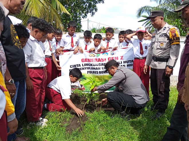 Selasa, 14 Oktober 2025 Polsek Tanah Putih Tanam Pohon Buah di SDN 035 Menggala Sakti Dukung Program Green Policing Kapolda Riau