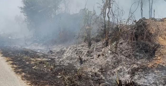 | Selasa, 11 Nopember 2025 Lokasi Sulit Dijangkau, Belasan Hektar Hutan Bukit Karak, Kampar Kiri Terbakar