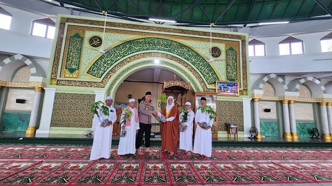 | Jumat, 20 Maret 2026 Ribuan Jemaah Sholat Idul Fitri Terima Bibit THR Hijau Polsek Dumai Timur