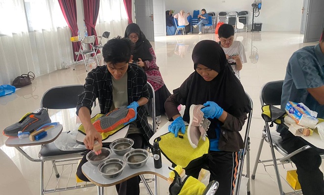 Riauterkini-PEKANBARU – Di sudut ruangan pelatihan yang penuh dengan aroma cairan pembersih dan deretan sikat halus, Ahmad Efendi tampak fokus. Tangannya dengan teliti menggosok bagian samping sepasang sepatu kets yang kusam.