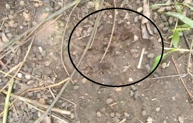 Jejak harimau juga terlihat di kebun milik Dadang yang juga berada di Kampung Benteng Hulu.