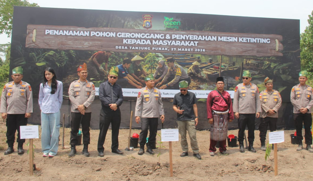 Kapolda Riau Tanam Geronggang dan Serahkan Mesin Ketinting untuk Nelayan di Rupat Utara