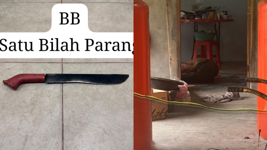 Polisi turut mengamankan sejumlah barang bukti, di antaranya sebilah parang bergagang merah sepanjang 44 cm, hoodie hitam, celana jeans abu-abu, serta satu set pakaian olahraga.